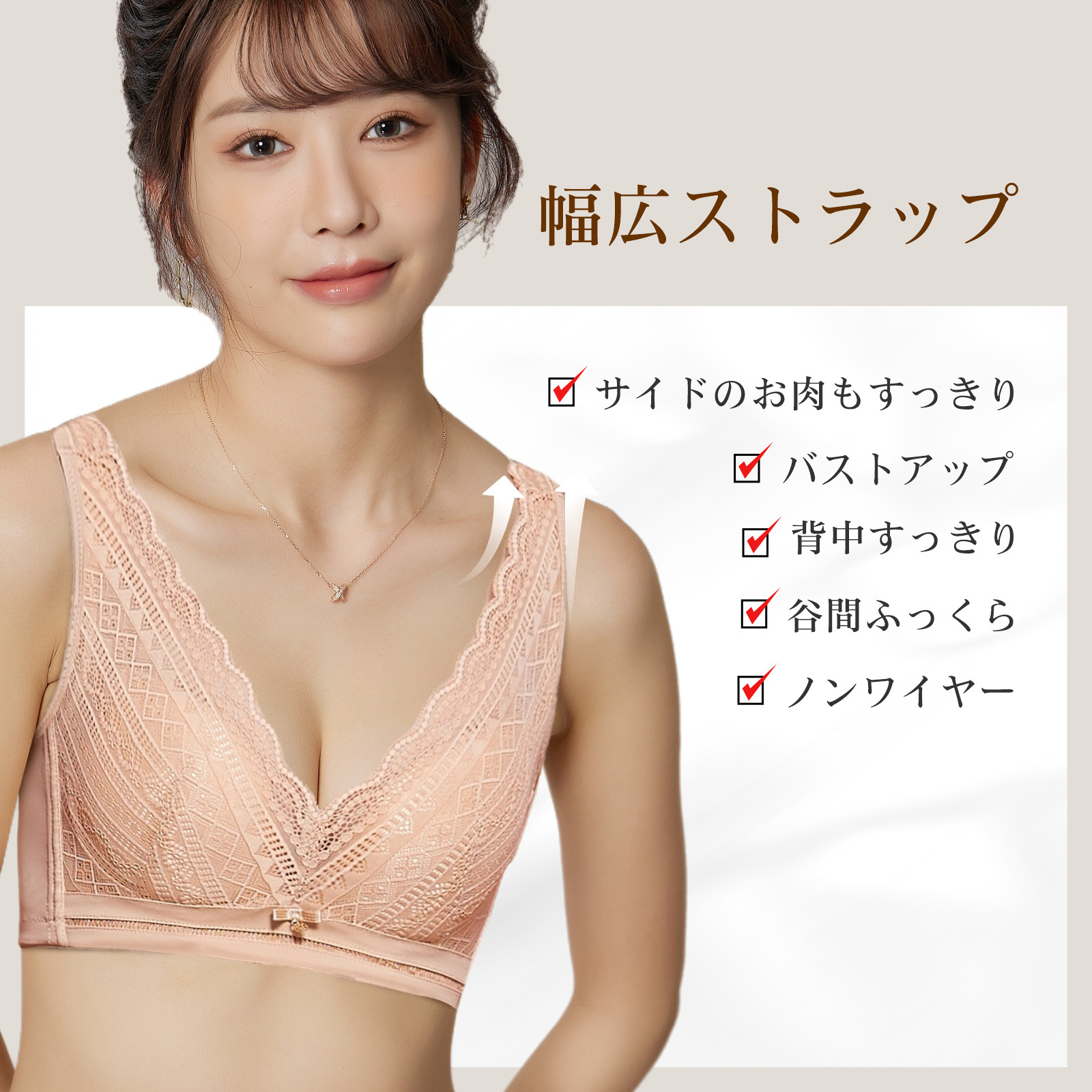 ブラジャー ブラ ノンワイヤーブラ 盛り 脇高 盛れる レディース 女性 下着 補正 谷間 美胸 育乳 ストレスフリー セクシー かわいい レース 小胸 大きく 背中すっきり バストアップ きれい 形 キープ 4段4列ホック 伸縮性抜群 着け心地 肌触り 快適 弾力感 お茶の繊維 柔らかい ストレス軽減 らく 楽